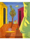 Surreale Acryl Malerei auf Canvas board, gerahmt. Der Rahmen ist mit gemalt und bereit zum Hängen.