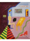 Surreale Acryl Malerei auf Canvas board, gerahmt. Der Rahmen ist mit gemalt und bereit zum Hängen.