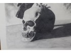 Die Konstellation von Rabe und Schädel sind ein beliebtes Motiv in der Gothic Szene und erinnert an das berühmte Gedicht "Der Rabe" von Edgar Allan Poe. Der Blick des Raben ist richtig gemein und geheimnisvoll und hat mich inspiriert zu dieser Zeichnung.
