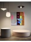 Das Werk reduziert die Natur auf ihre klarsten Formen: Blüten, Blätter und Stiele erscheinen als flächige, geometrische Konturen, in präzise gesetzten Linien und harmonischen Farbfeldern. Die Farbpalette bleibt bewusst leicht und luftig – sanfte Erd - und Pastelltöne treffen auf einzelne kräftige Akzente – und erzeugt ein Gefühl von Ruhe und Leichtigkeit. Die Leinwand (100% Naturleinen) zeigt sich im Bereich der Streifen und unterstreicht die natürliche Ausstrahlung.
